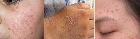 张女士的脸原来是白皙细嫩的,可不料后来脸上突然长出了一些小米粒大小的淡褐色的丘疹,并且伴随有很强烈的瘙痒,刚开始的时候数量仅仅是一两个,后来不经意间已经发展成一大片了。张女士急忙来到太原肤康中医皮肤病医院来就诊,结果被确诊为患了扁平疣。>>【案例详情】询问医生分析病情<<