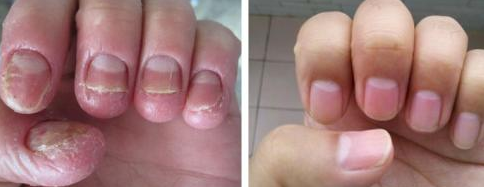 患者在我院治疗灰指甲前后对比图