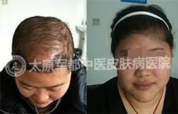 斑秃患者王女士来太原肤康医院皮肤科初诊时的照片(头顶部) 斑秃患者王女士来太原肤康医院皮肤科初诊时的照片(头后部) 幸亏主任,幸亏我到肤康医院来,不到肤康医院来,我估计我的头发也不知道到哪里才能治得好,所以说,我现在非常感谢主任,真的非....[详情点击]