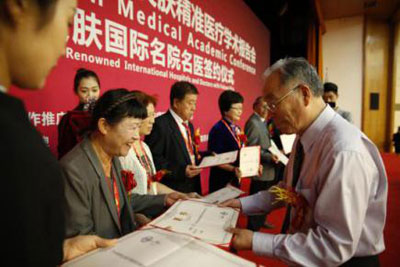 本次大会的另一大亮点就是国内外皮肤医生共同签约肤康皮肤。由肤康总院长吕忠生教授(原北大副校长)与各地三甲医生签约并颁发聘书。
