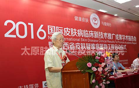 日前,由中国医疗保健国际合作推广专业委员会主办,国际皮肤外科协会、加拿大皮肤科医师协会、中国中西医结合学会皮肤专业委员会协办,太原肤康中医皮肤病医院承办的“2016国际皮肤病临床新技术推广成果报告会”在太原圆满落幕。原国家卫生部副部长孙隆椿出席了学术大会,并做重要指示。